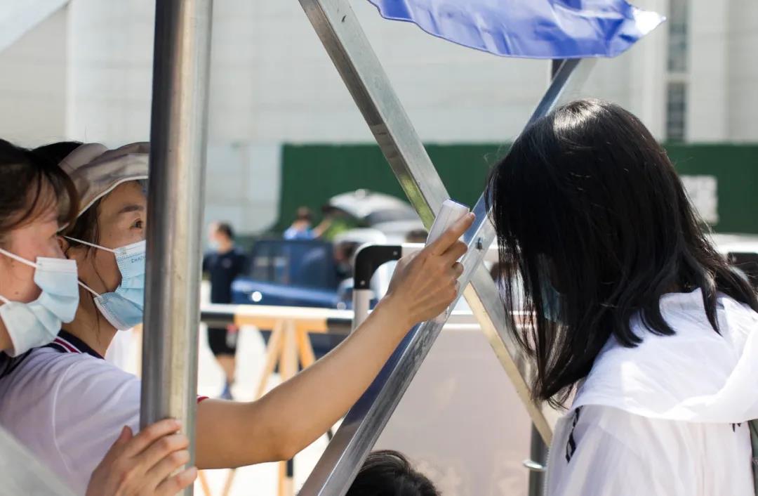 学校师生严格遵守防疫防控规章制度,国际班的同学们错时错峰分批入校,手持健康登记表、14天体温记录表一一查验,消毒、测温,做好开学期间的疫情防控工作。