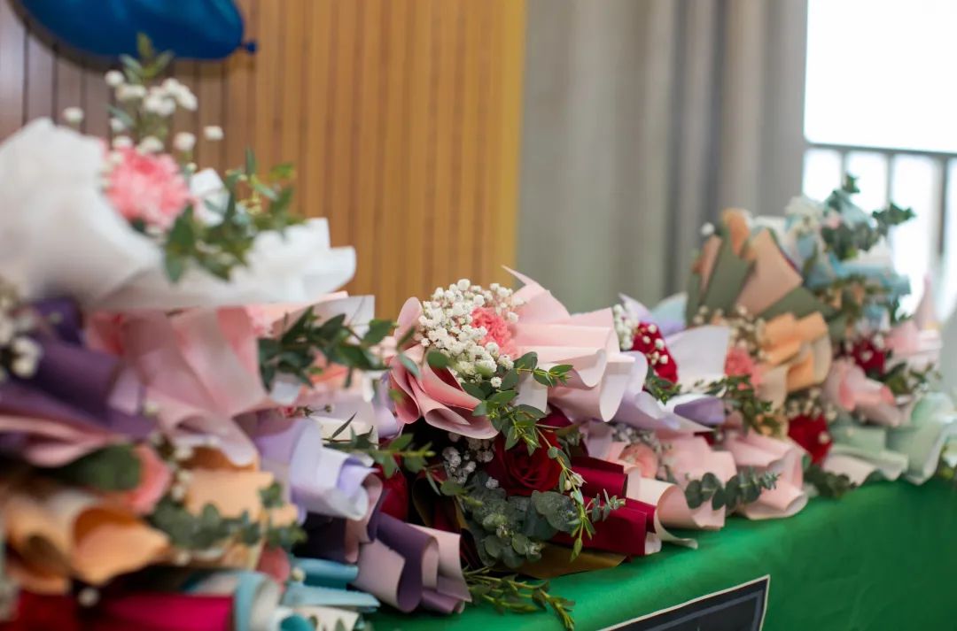 1-3月生日的“寿星”们接受鲜花和祝福。