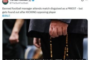 这一疯狂事件发生在意大利,这位已被禁赛的足球教练身着神父长袍抵达赛场,据报道,他在球场边区域向己方球员下达指令。